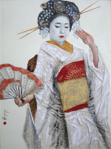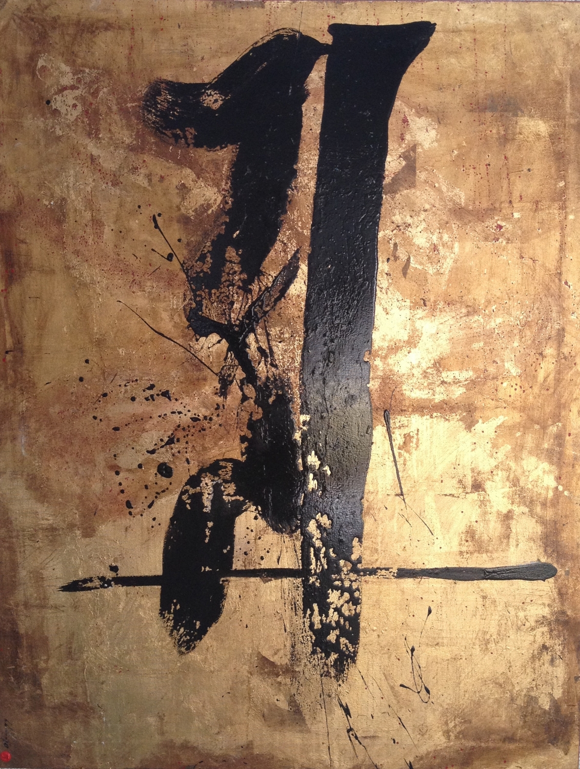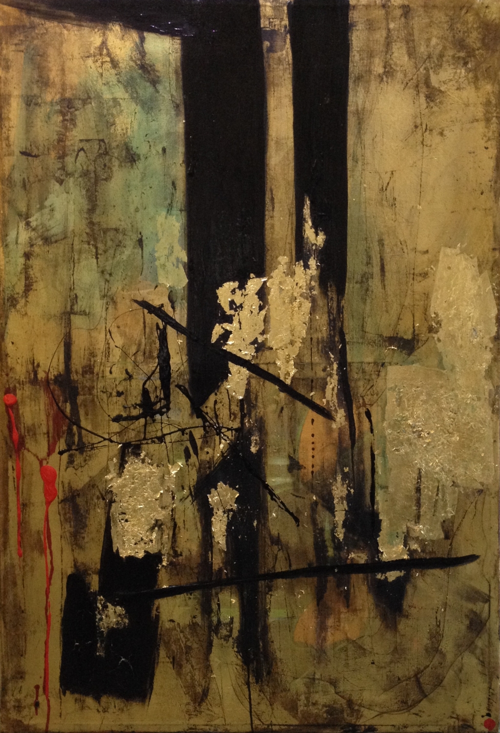 Oleo con tecnica mixta con pan de oro sobre lienzo