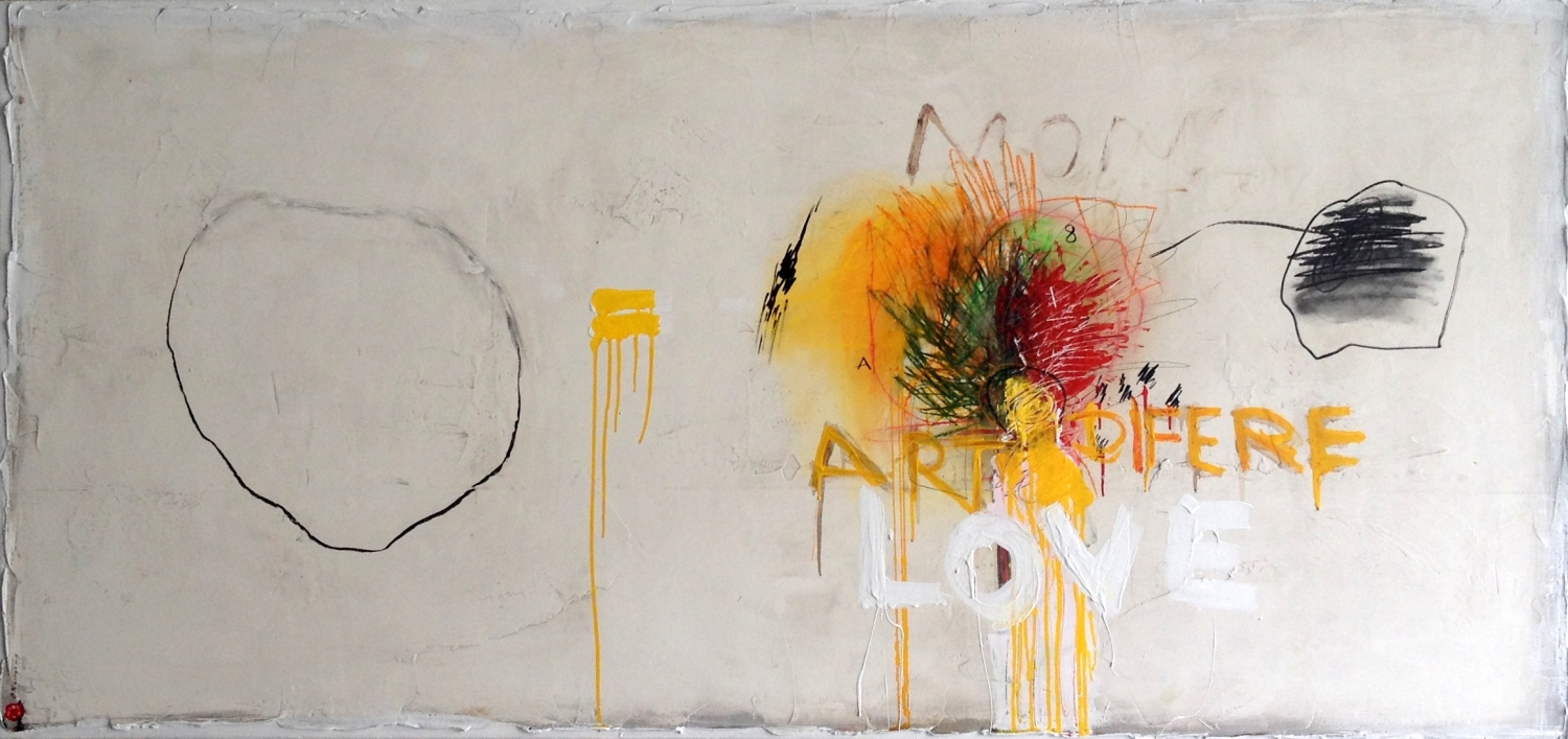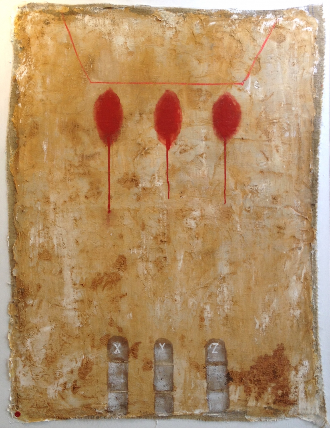 óleo sobre arpillera con tecnica mixta sobre lienzo