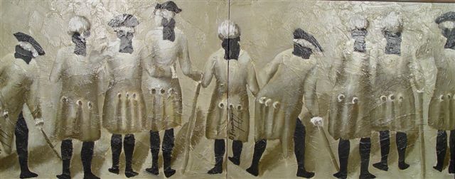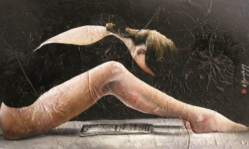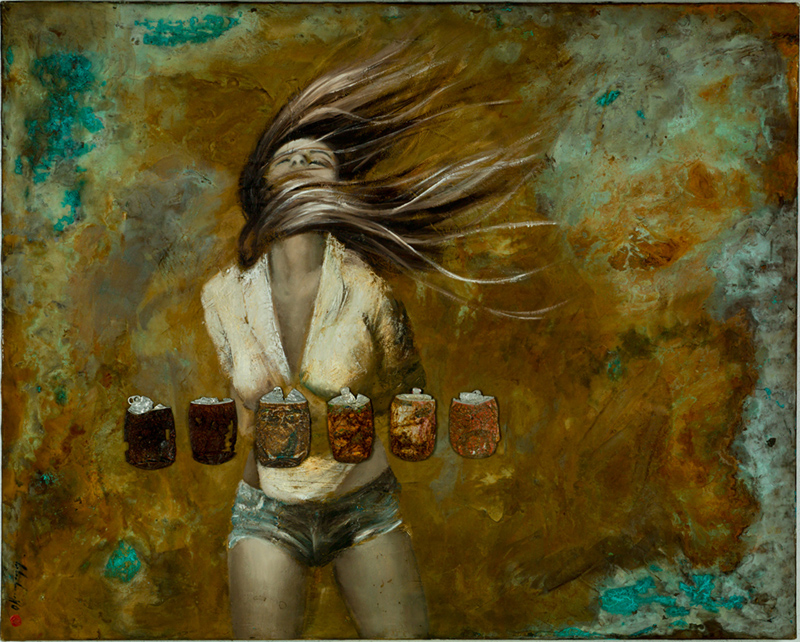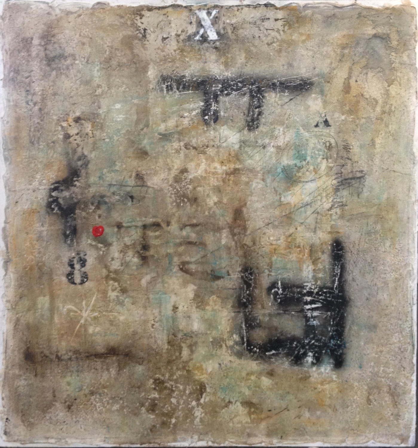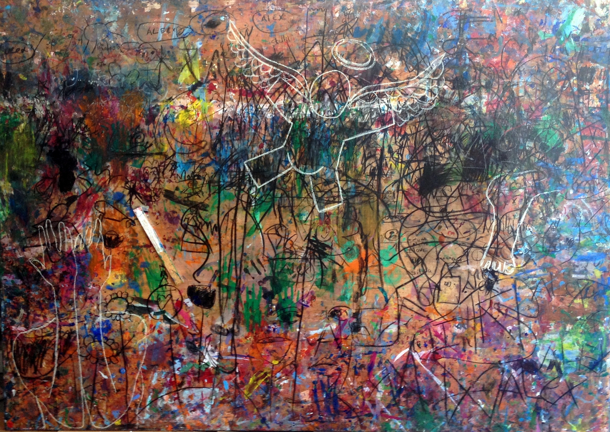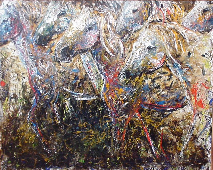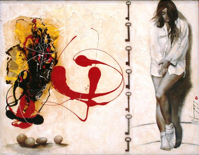 óleo sobre arpillera con tecnica mixta sobre lienzo