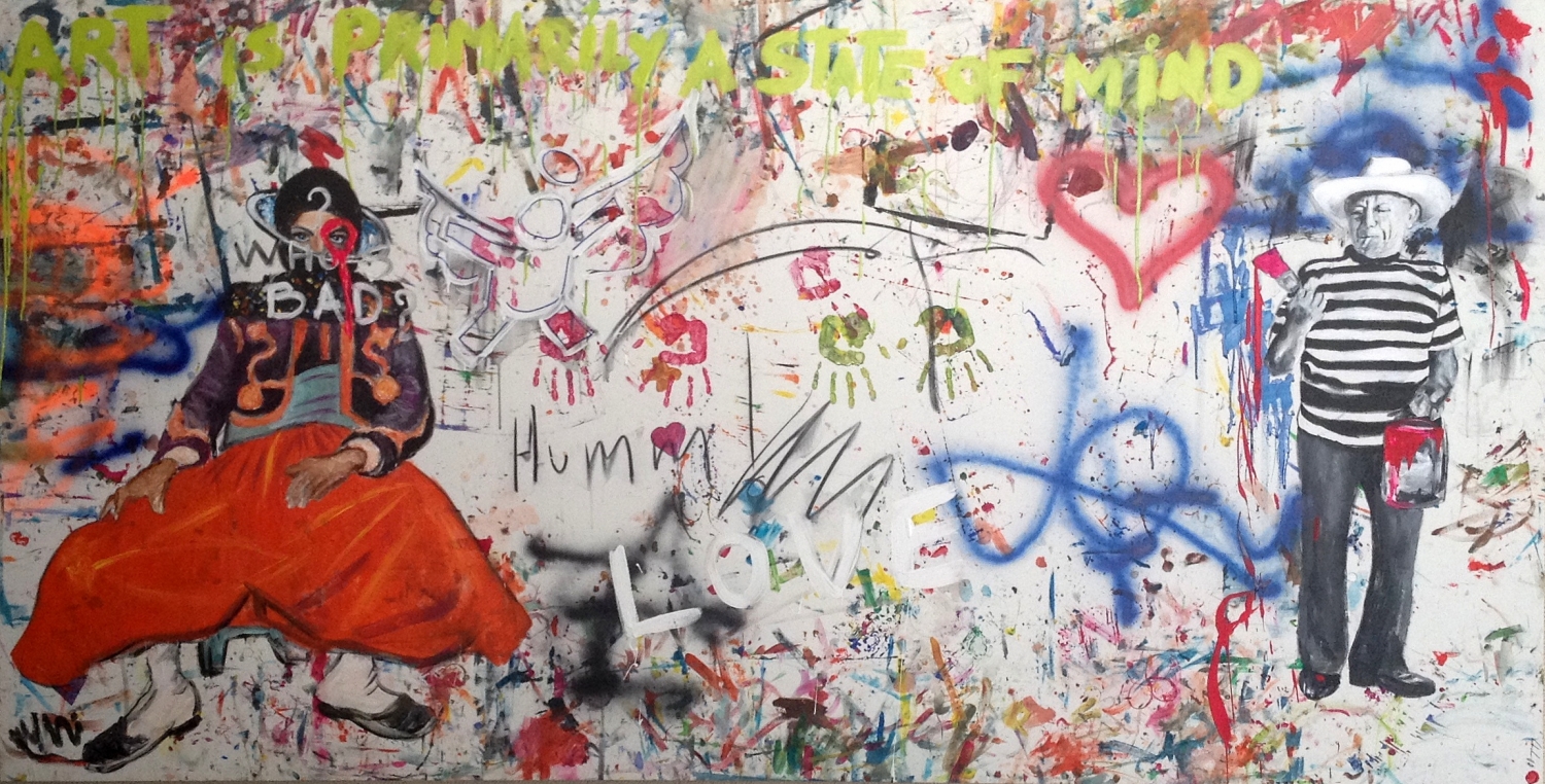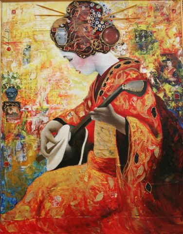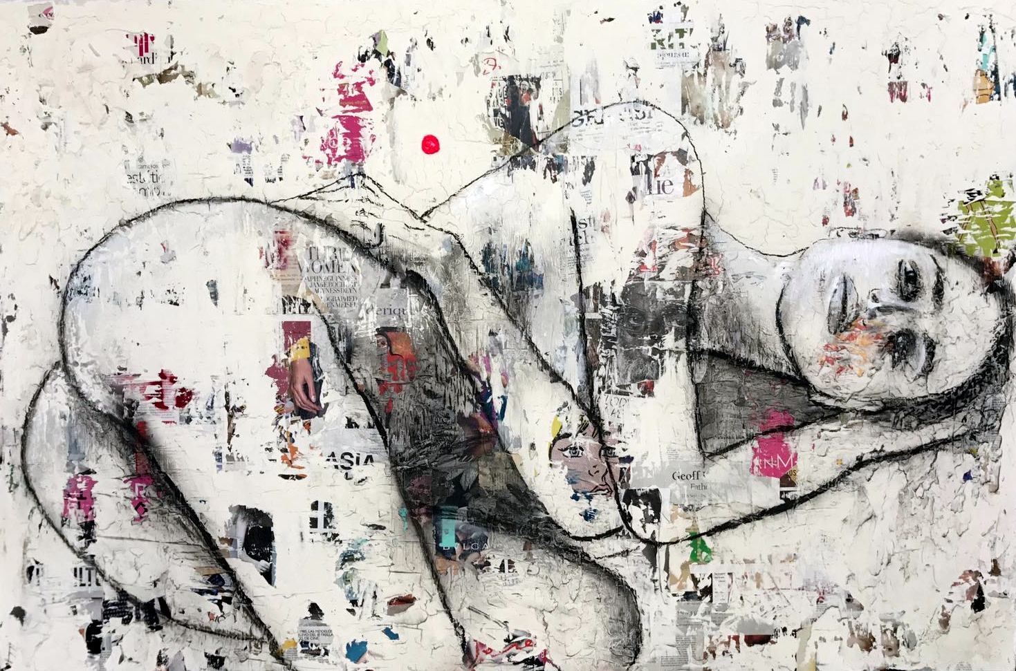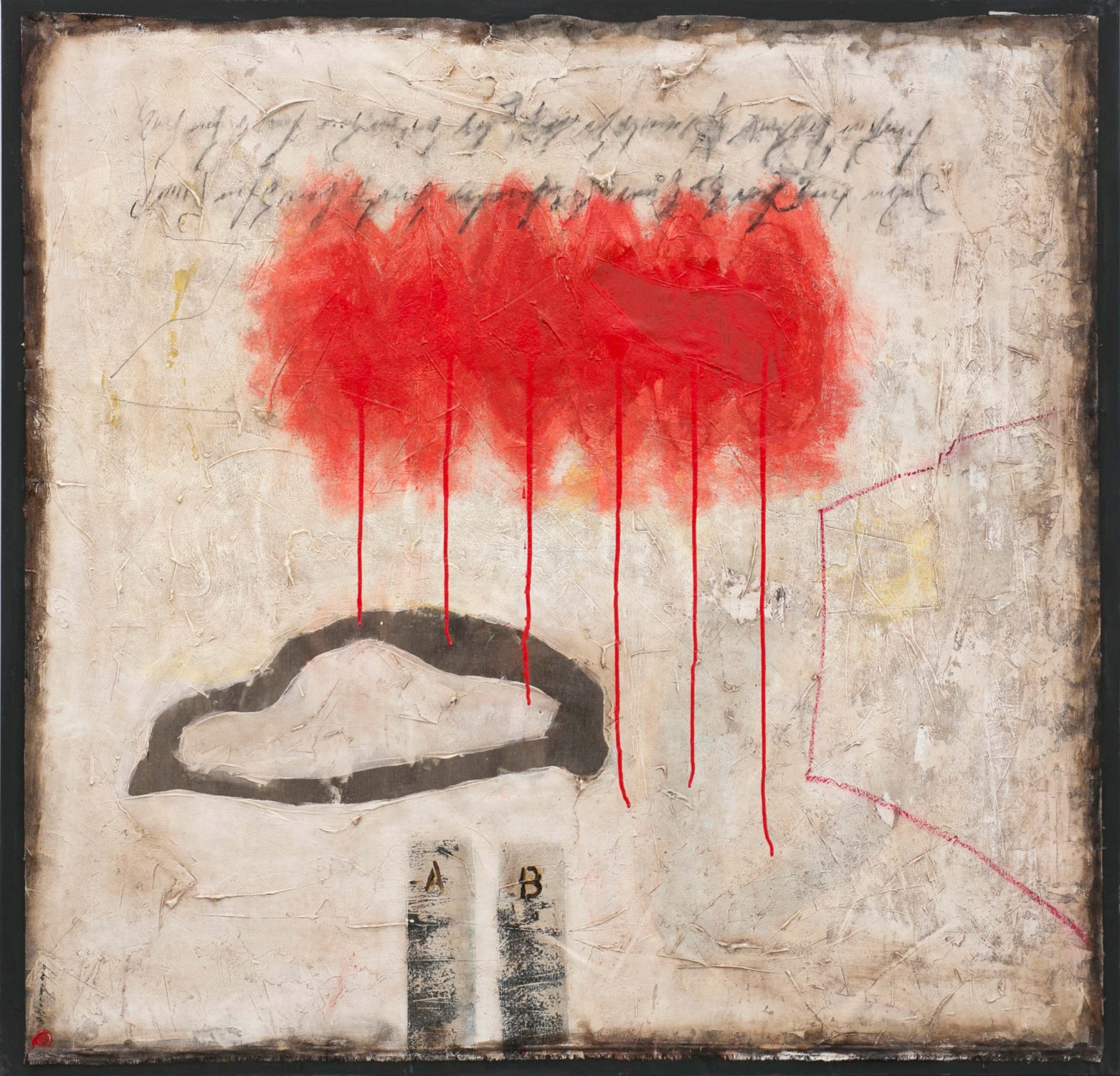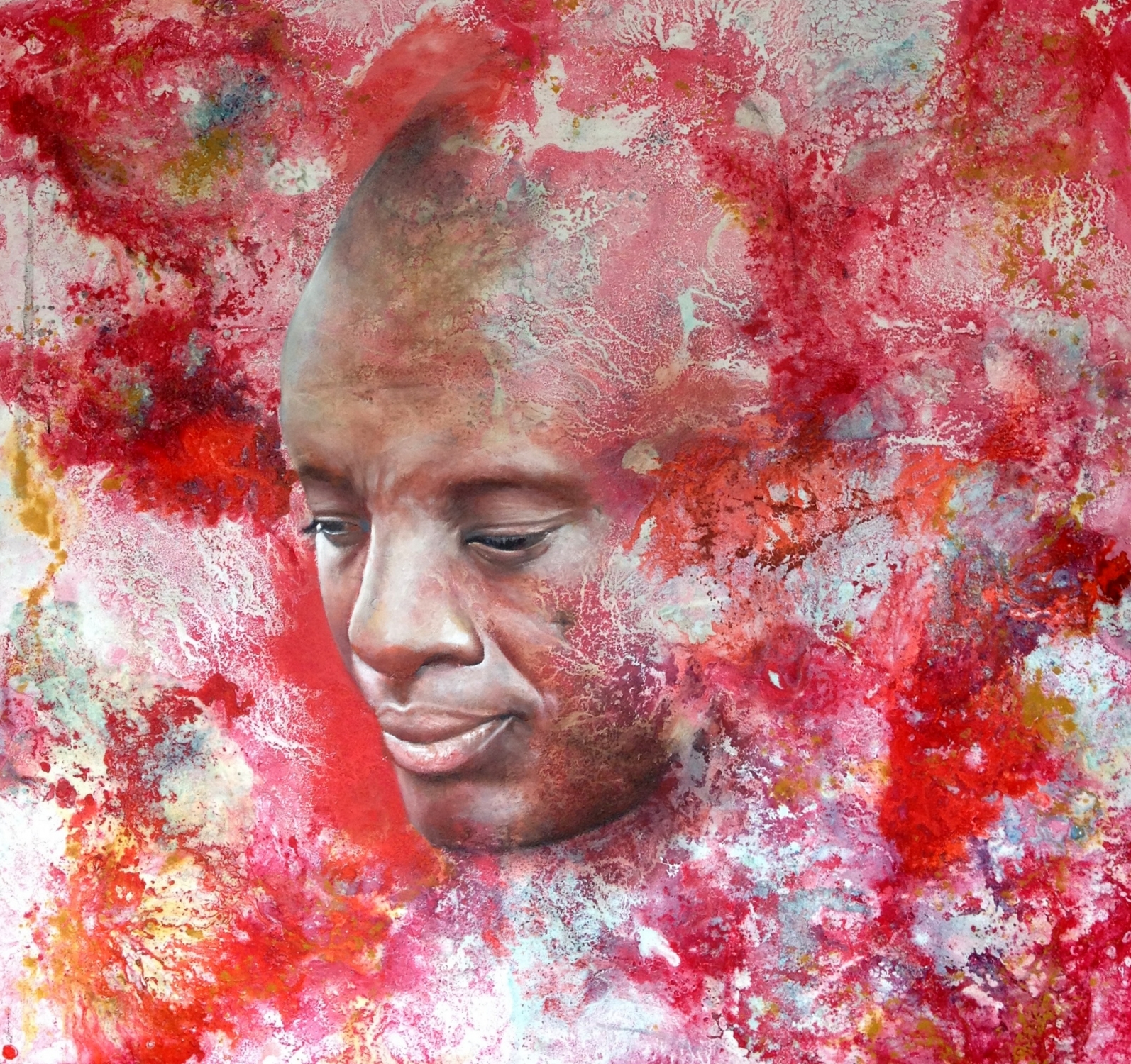 óleo sobre arpillera con tecnica mixta sobre lienzo
