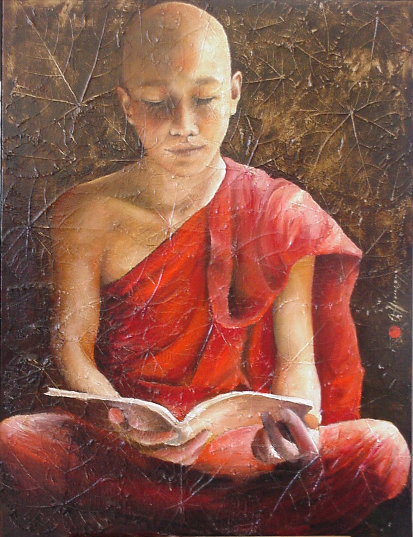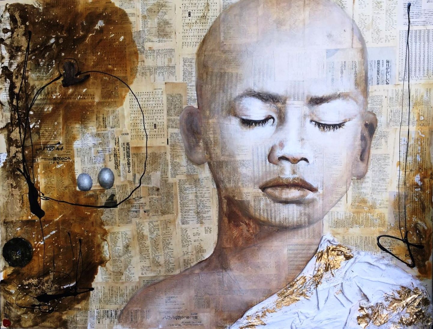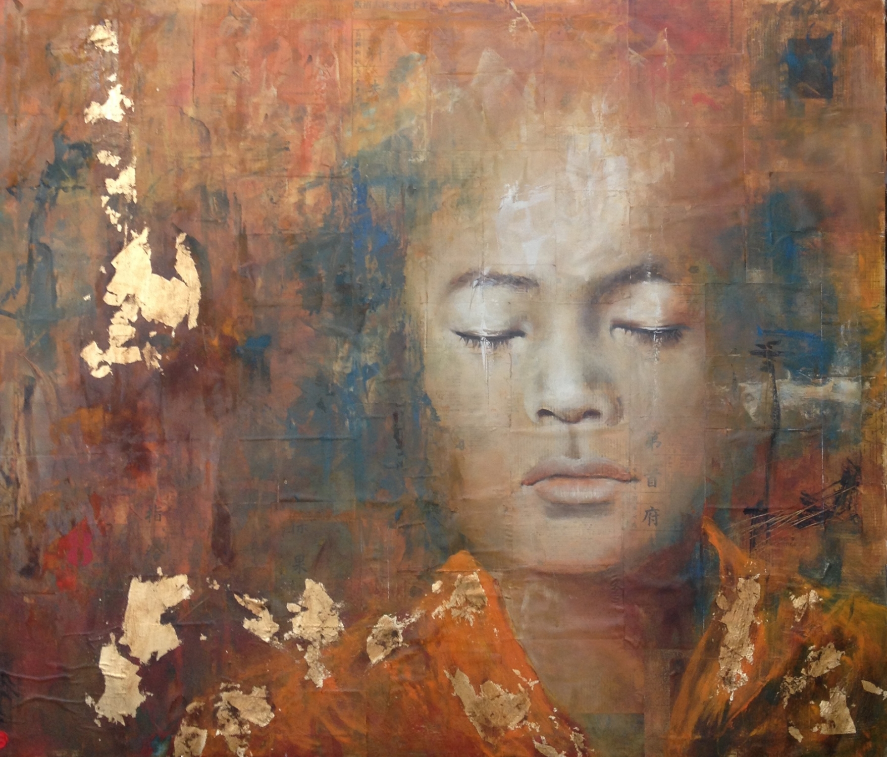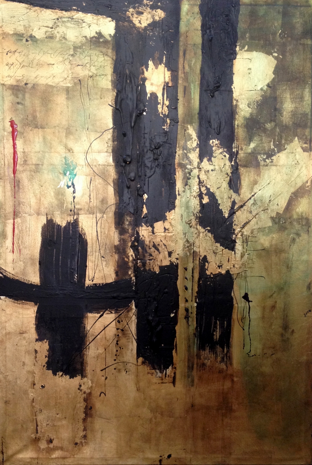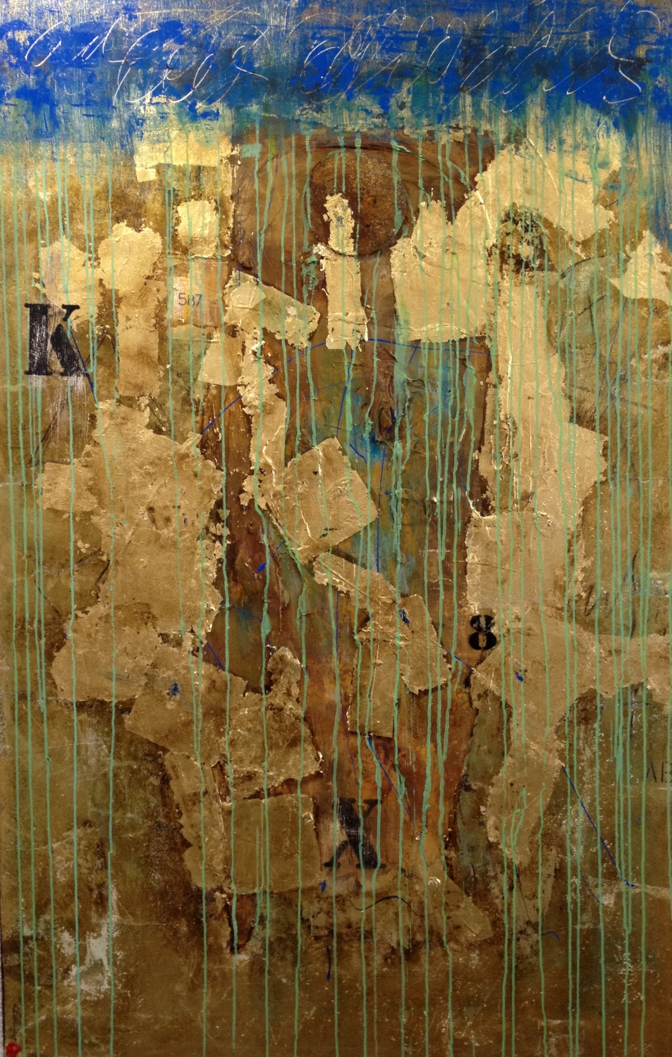 Oleo con tecnica mixta con pan de oro sobre lienzo